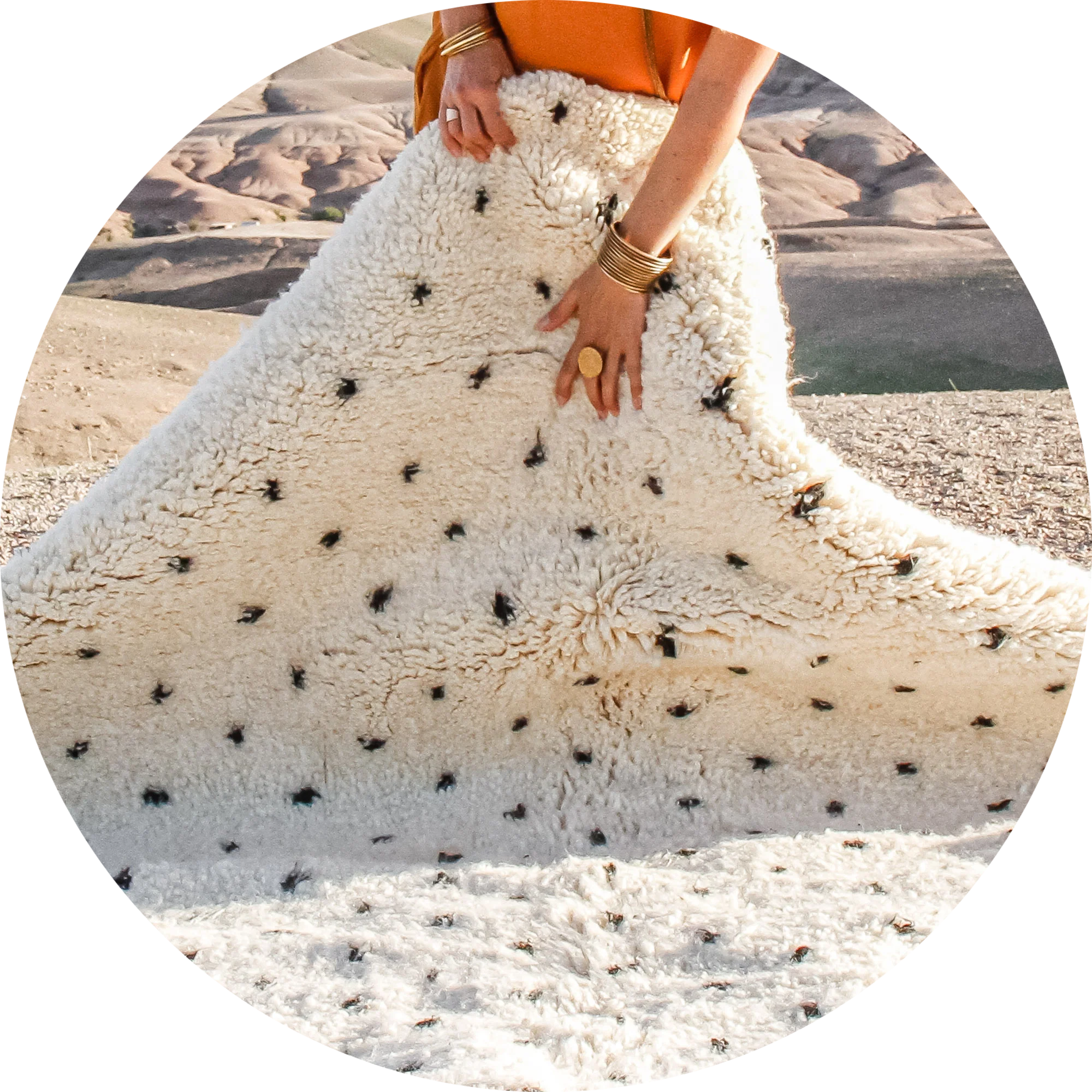 Toutes nos créations sont tissés à la main par des tisserandes de manière traditionnelle et portent le prénom de femmes Berbères.