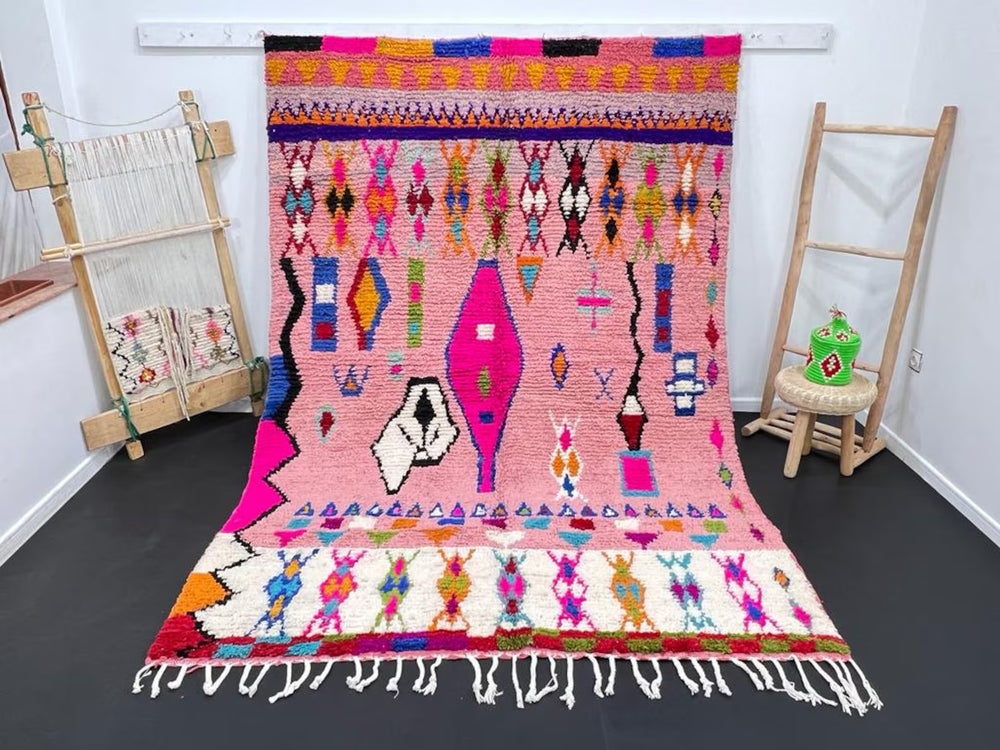 Chez moi, la laine, le métier à tisser et les couleurs des tapis faisaient partie du quotidien. J’ai grandi en voyant ma mère et tant d’autres femmes transformer la laine brute en véritables œuvres d’art. Ces gestes, transmis de génération en génération, m’ont appris que chaque tapis amazigh est plus qu’un objet : c’est une histoire, une mémoire, une liberté tissée fil après fil.